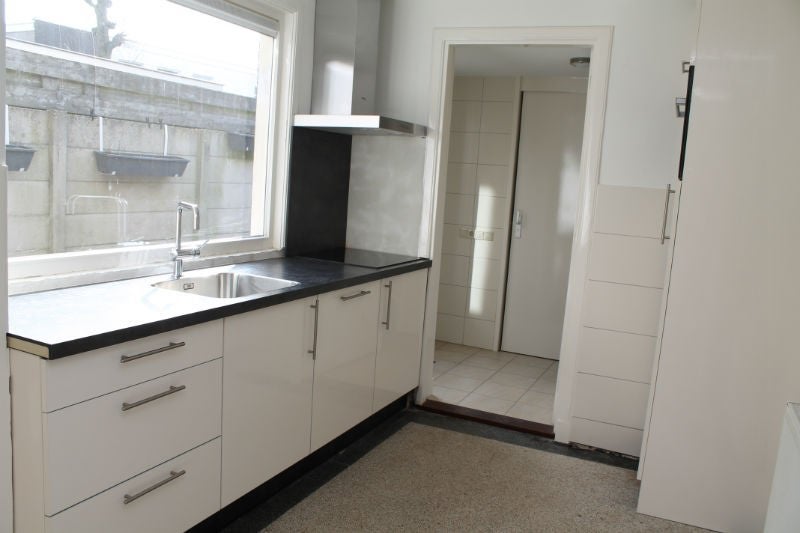 De keuken is ook compleet vernieuwd, maar de authentieke terrazzovloer is gelukkig behouden. De keuken beschikt over een lang aanrecht, een vaatwasser, koelkast met vriesvak, keramische kookplaat, oven en een proviandkelder. De keuken geeft toegang tot de bijkeuken waar men de wasmachine en droger kan plaatsen. Ook vanuit hier kan men de tuin betreden en het toilet en extra badkamer met inloopdouche.