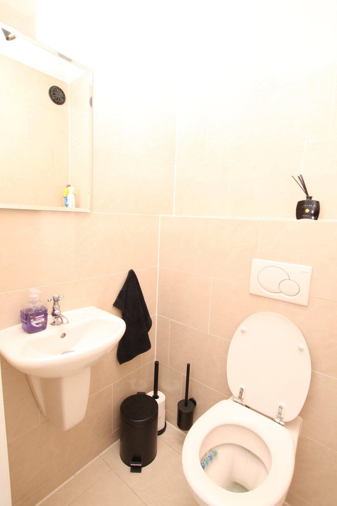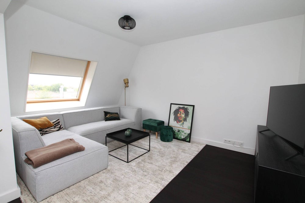 Once you enter you will find the coat rack and toilet at the entrance of the hallway which leads to the living area.The sitting area features a lovely sofa, coffeetable and a large flatscreen TV. The dinner area features a wooden table with fourt chairs, the light here is amazing. From here you can enter the balcony through the sliding doors. From the balcony you have views of the entire city center. The balcony is located on the east.