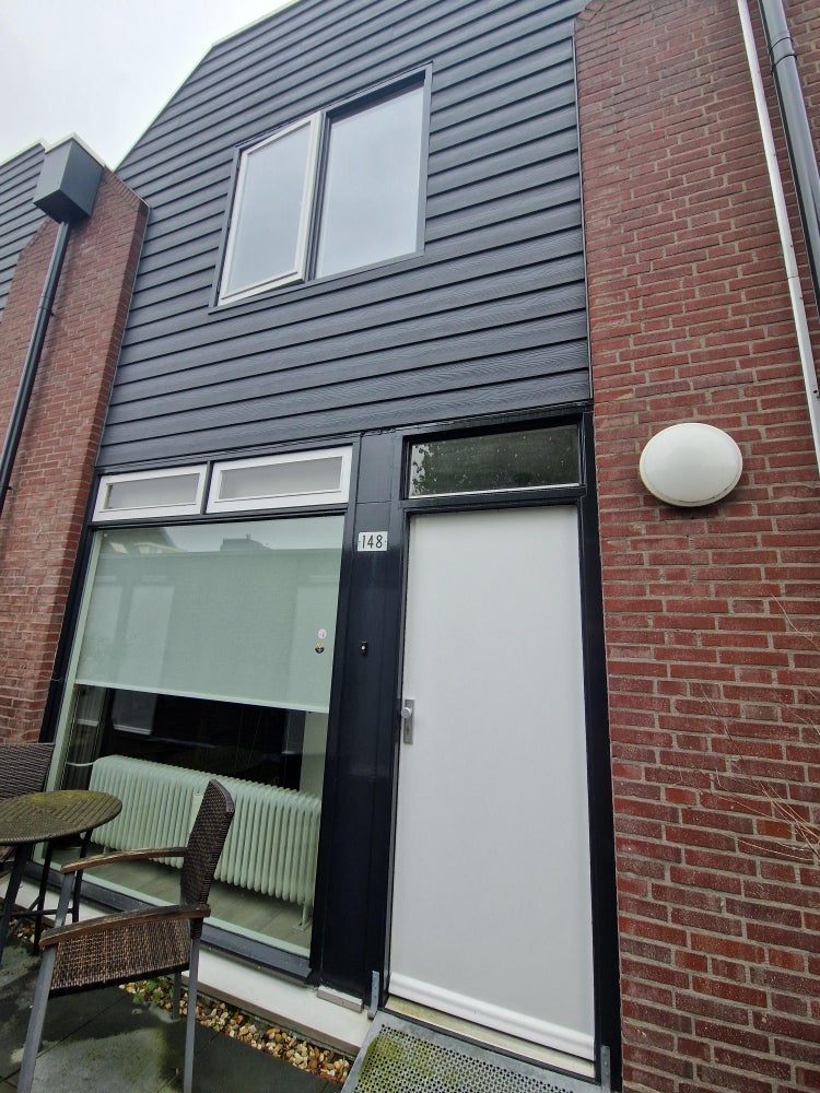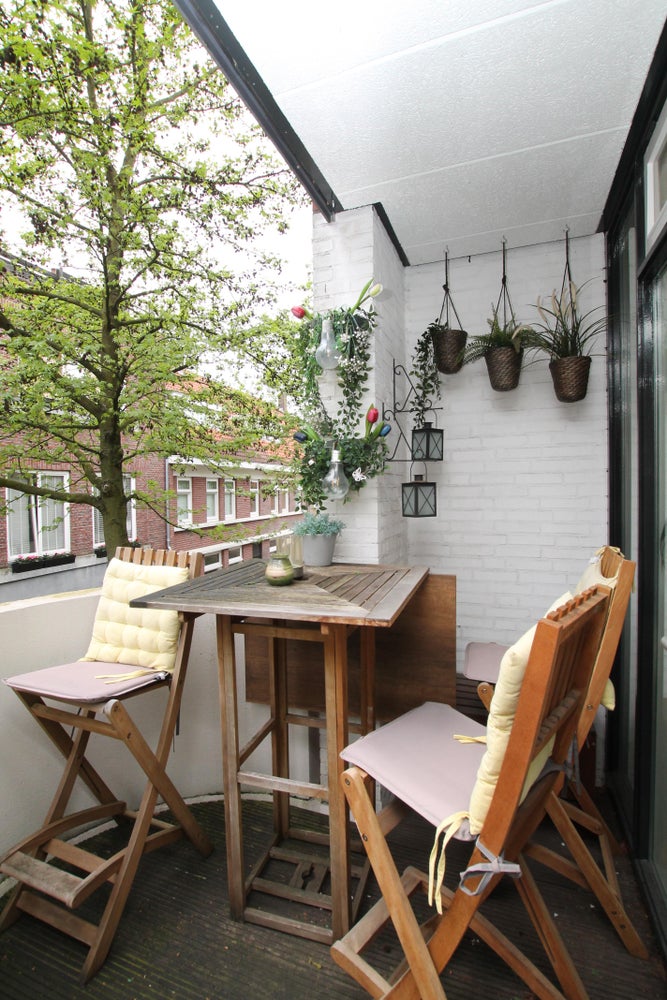 Aan de straatzijde een gedeeltelijk overdekt balkon.